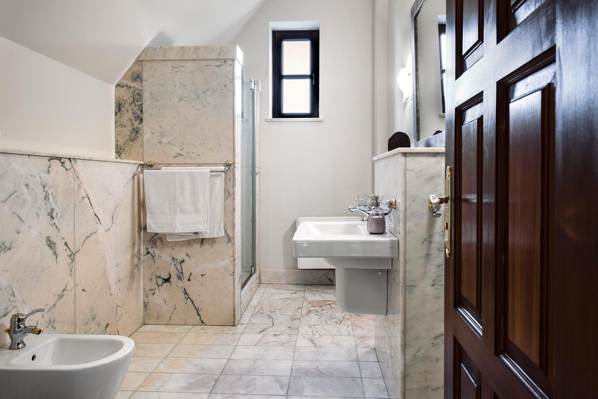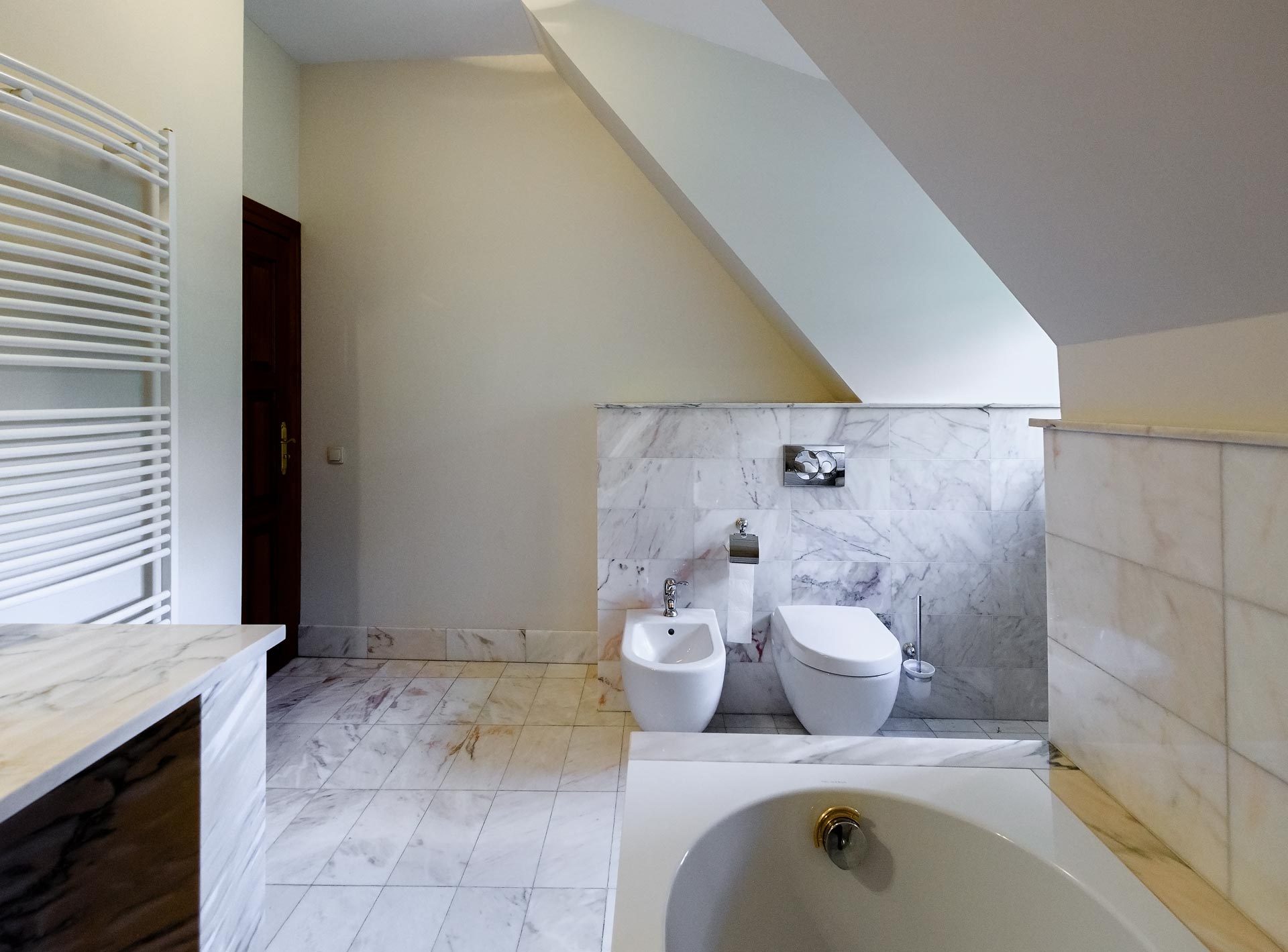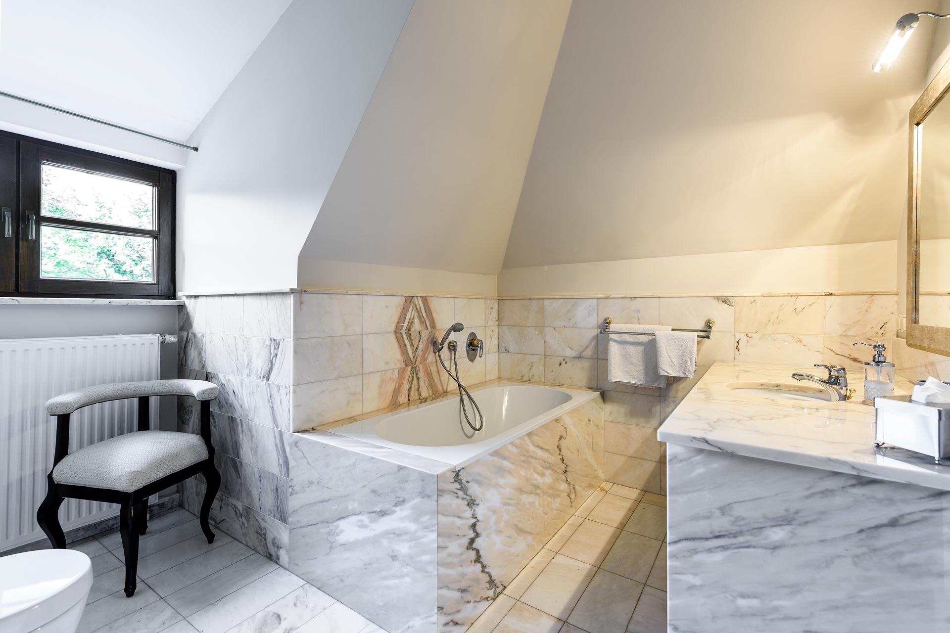 Eleganckie, wykończone marmurem pomieszczenie łazienki