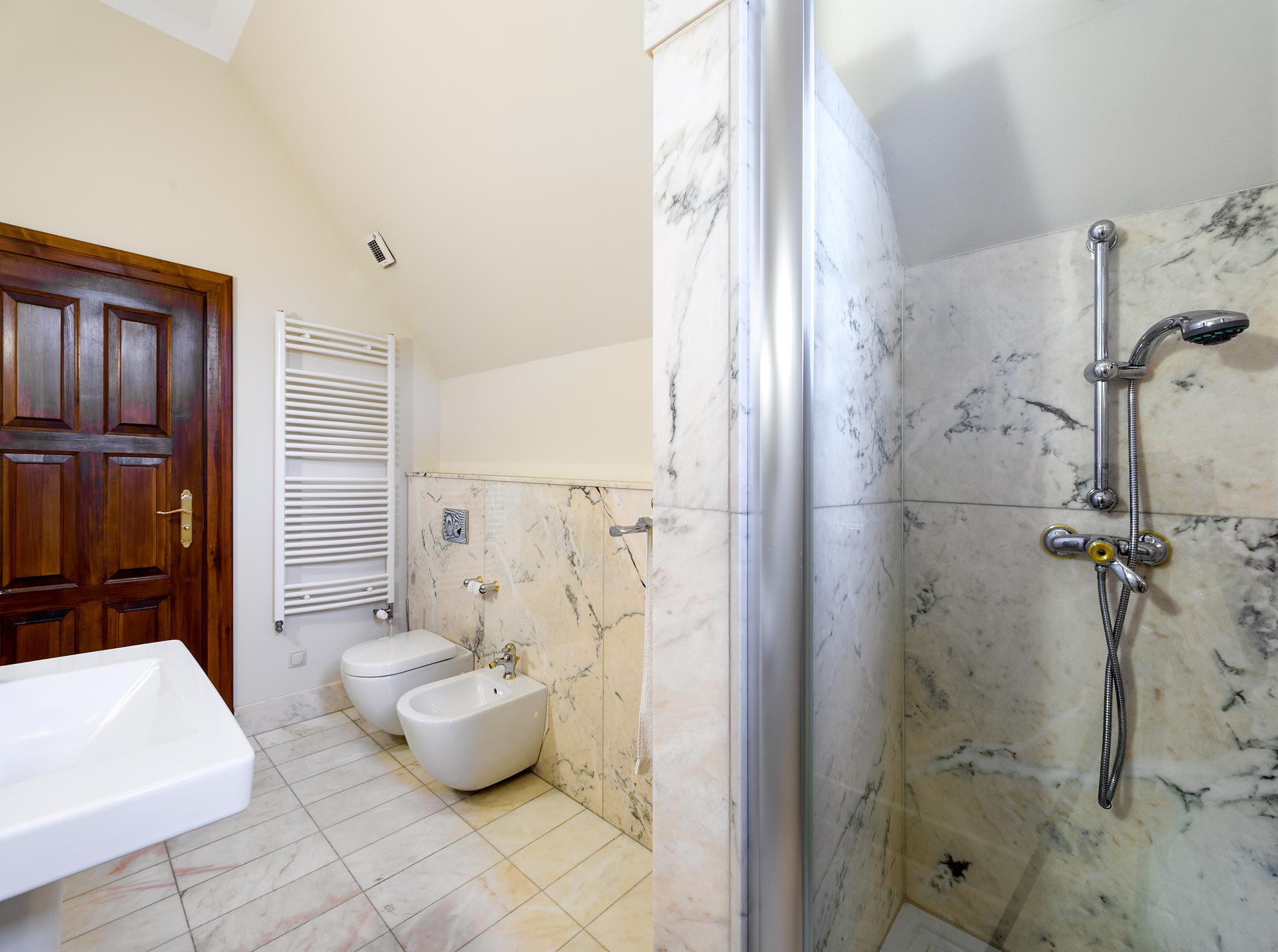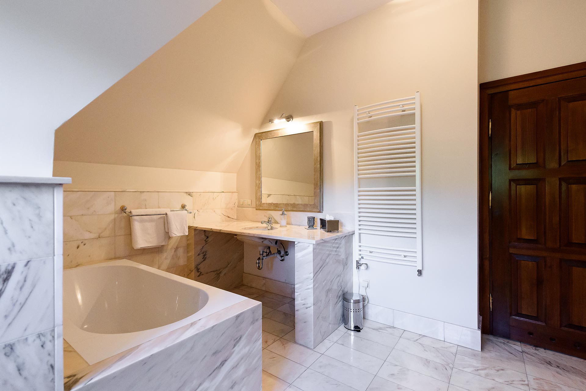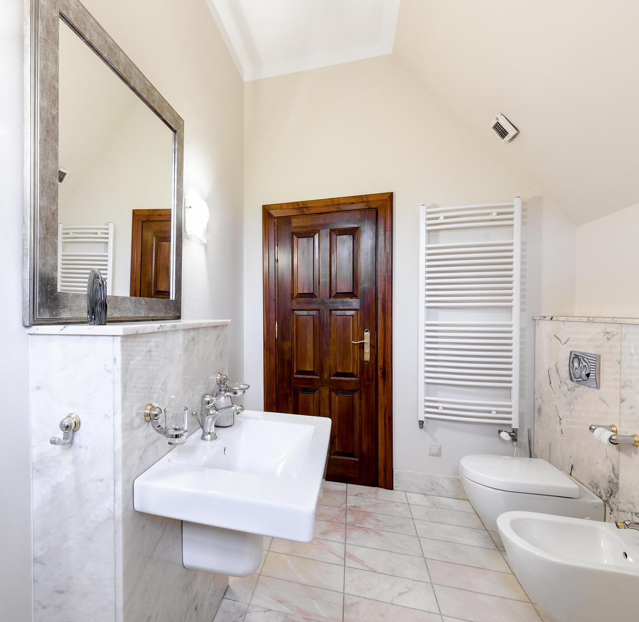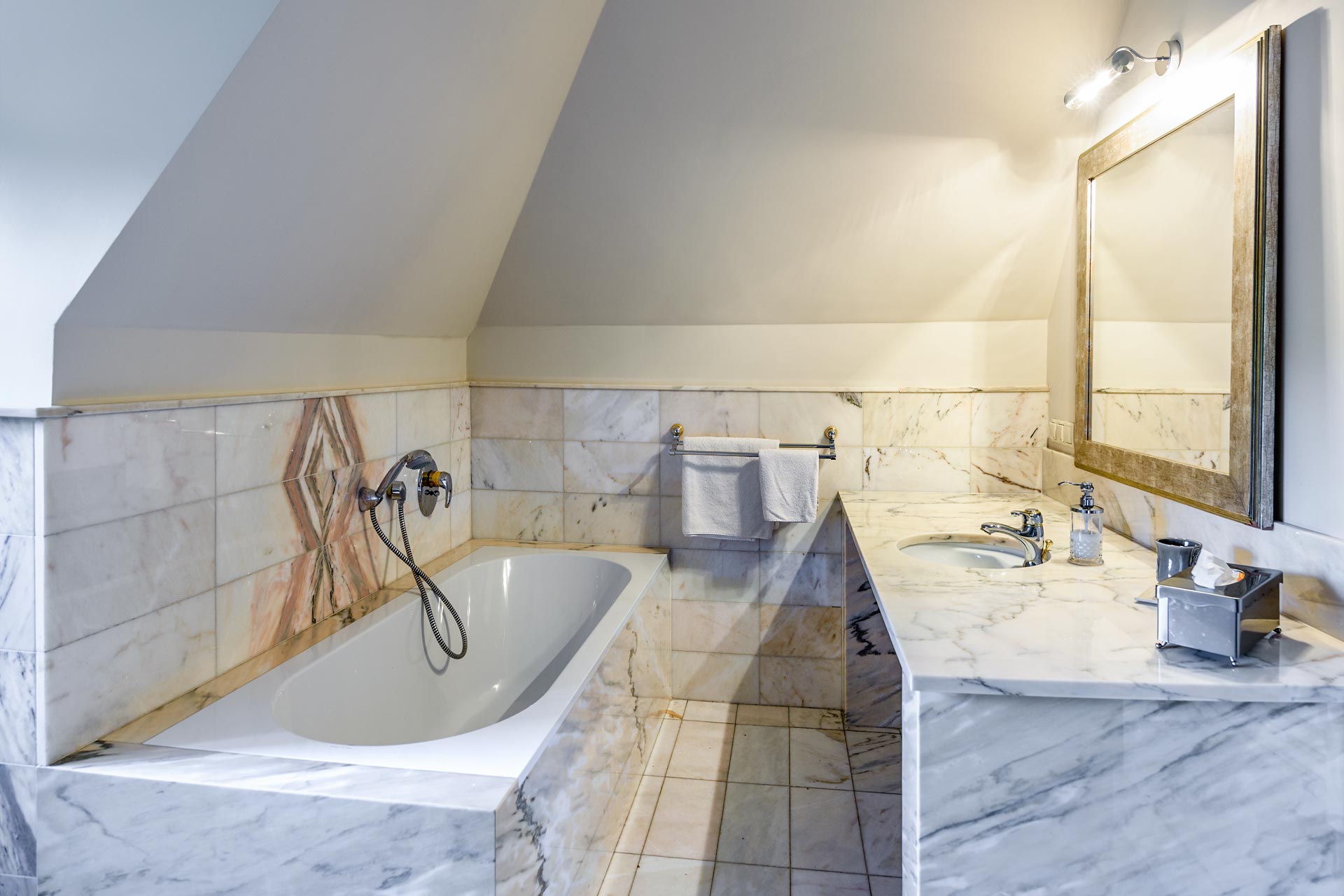 Eleganckie, wykończone marmurem pomieszczenie łazienki